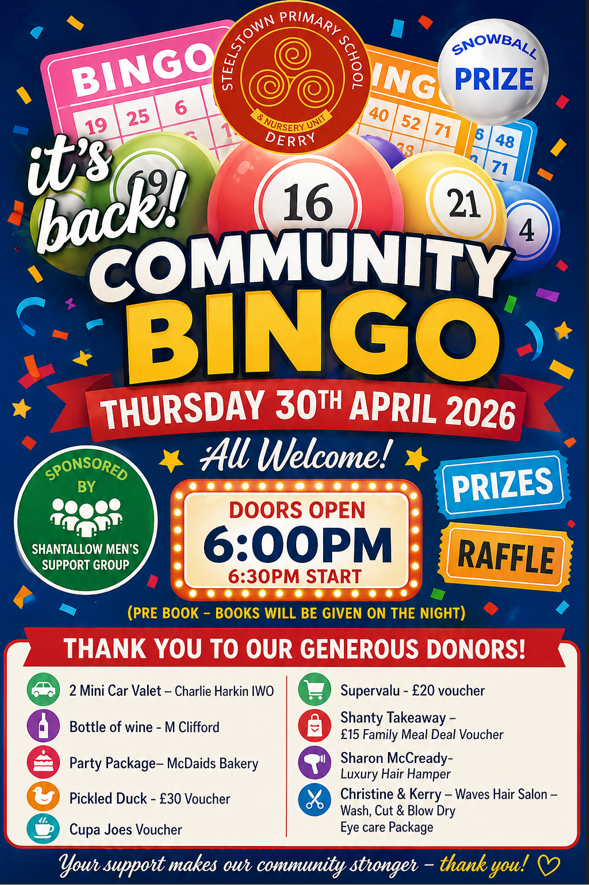 Don’t forget – our Community Bingo takes place t 6.30pm in school!