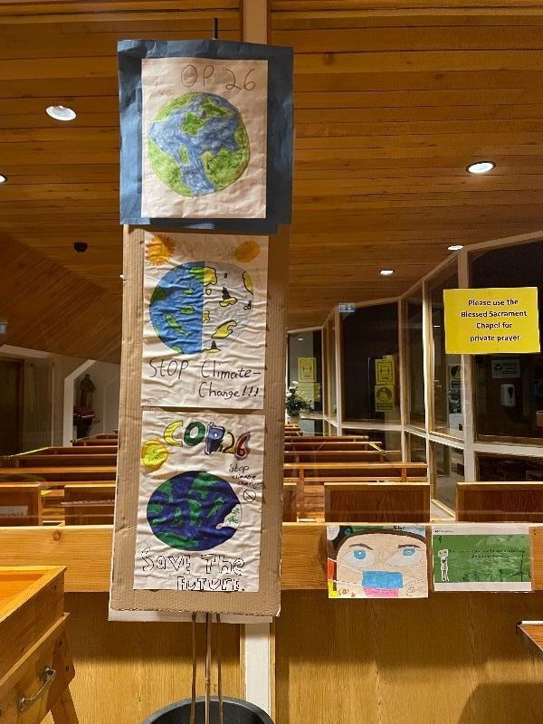 The children of Steelstown Primary School have filled Our Lady of Lourdes, Steelstown with posters letting our parishioners and the wider world know that the eyes of the world are on world leaders as they gather at COP26 - the UN's climate summit in Glasgow. They will make important decisions that will shape the future of our global family. We keep them in our prayers at this time.
